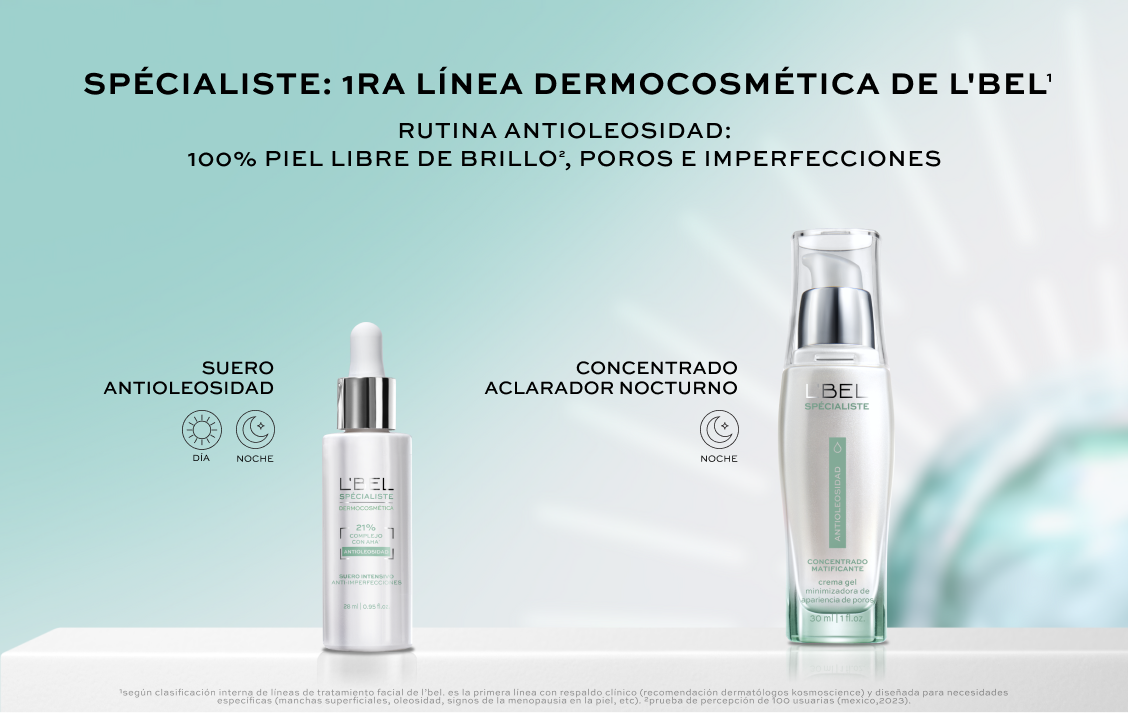 En el portafolio de L’BEL puedes encontrar productos de dermocosmética con eficacia comprobada para cada necesidad. La línea Spécialiste, por ejemplo, ofrece soluciones con respaldo clínico tanto para manchas como para piel oleosa y avalado por laboratorios internacionales.